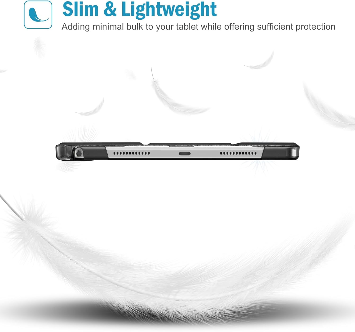 Tri-Fold Stand Case: Slim Magnetic Front Cover can be folded into a triangle to prop up the tablet in landscape for viewing or typing