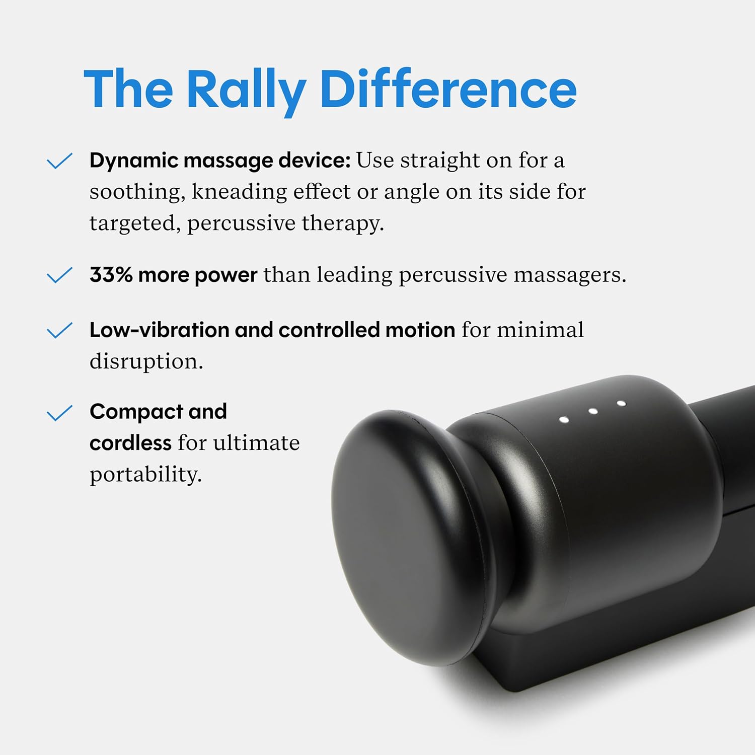 Low-Impact, High-Performance Relief – Rally’s unique orbital action delivers 1600–3200 RPM for deep tissue support with 33% more speed than leading percussive massagers. Switch from soothing orbital massage to deep tissue percussive massage by pivoting Rally on its edge.