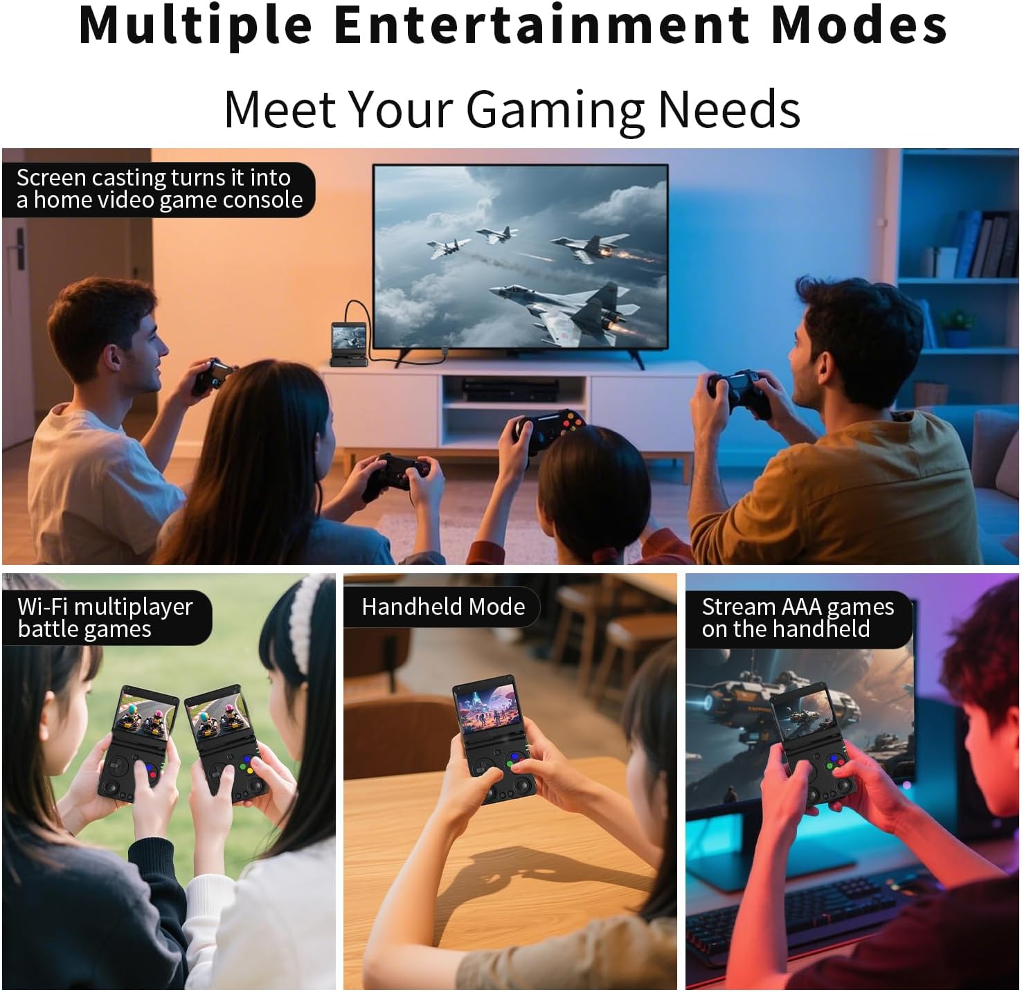 【Anbernic RG34XXSP Foldable Handheld Game Console】 2025 New RG34XXSP Flip handheld game console , Built in 64G SD Card 4353 classic games, support more than 10 game format . Linux System can add emulators and games with related format.