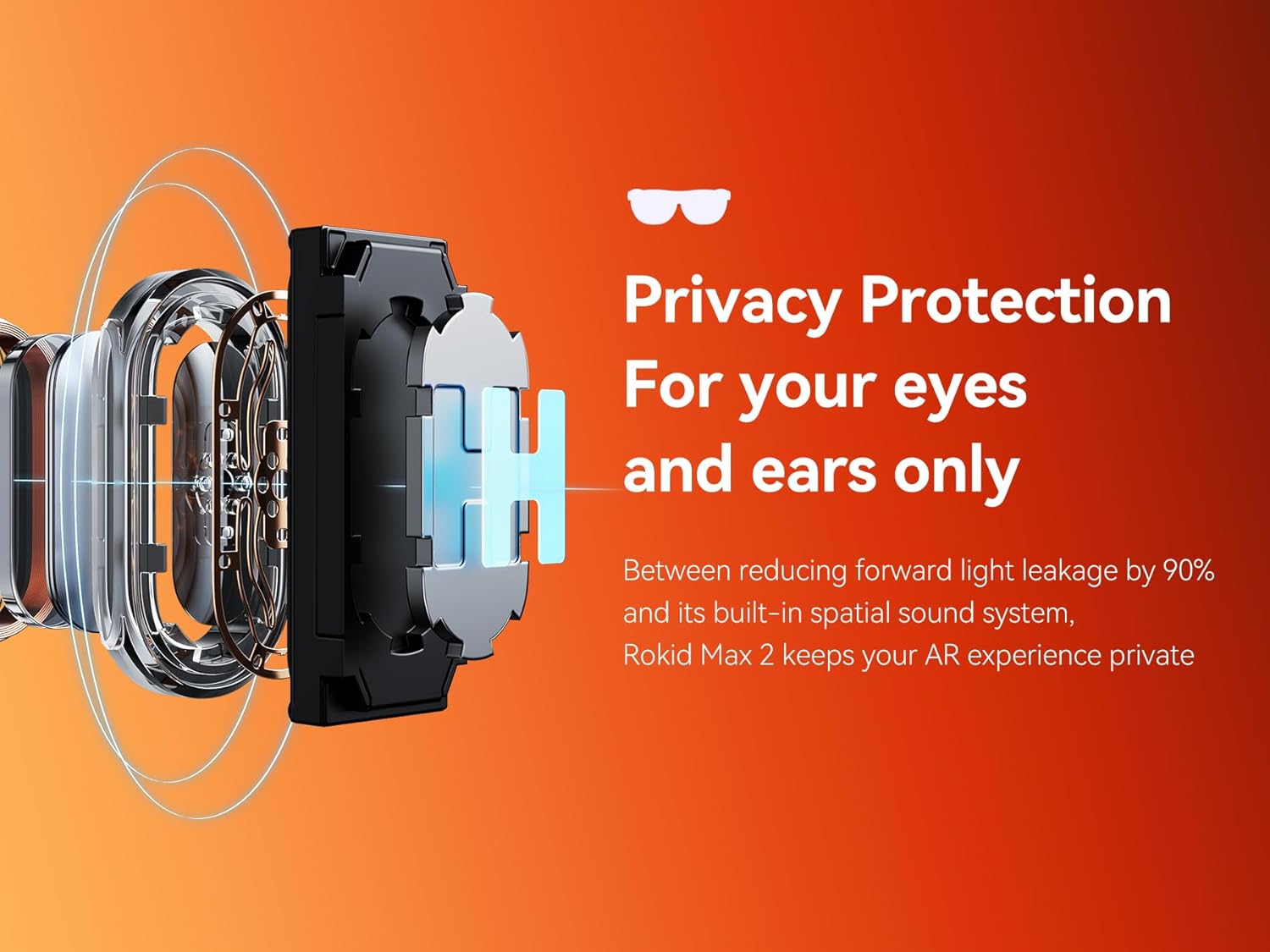 The Rokid Max2 weighs just 75 grams and is wide enough to fit faces up to 16cm. Support HDCP for seamless content protection, ensuring secure and seamless streaming of your favorite movies, shows and games.
