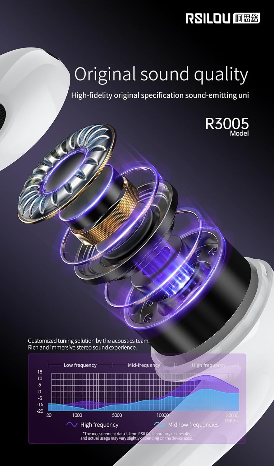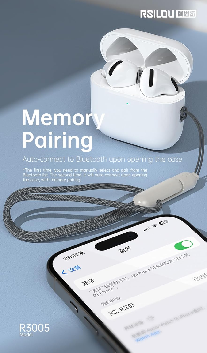 RSILOU R3005 – True Wireless Stereo Earphones | 13mm Dynamic Drivers | 6.5 Hours Playtime | Bluetooth 5.3 Earbuds with Charging Case – White