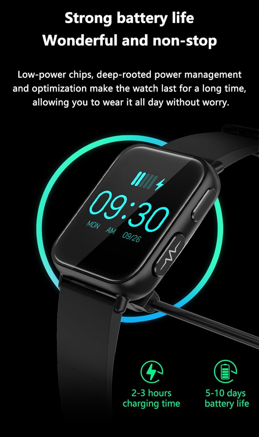 🔋 Your Life Companion & Long Battery Life – Never miss a call or message again by connecting this watch to your phone. With a 2-hour charge, it provides up to 7-10 days of standby life, making it the perfect companion for your daily activities.