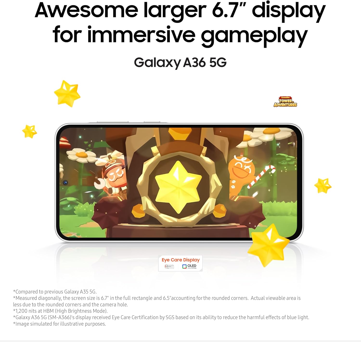 Samsung Galaxy A36 5G (Awesome White, 8GB, 256GB) | Awesome Intelligence AI Smartphone:Circle to Search,Object Eraser | 4nm Snapdragon Processor | Flagship Grade Selfie Camera-International