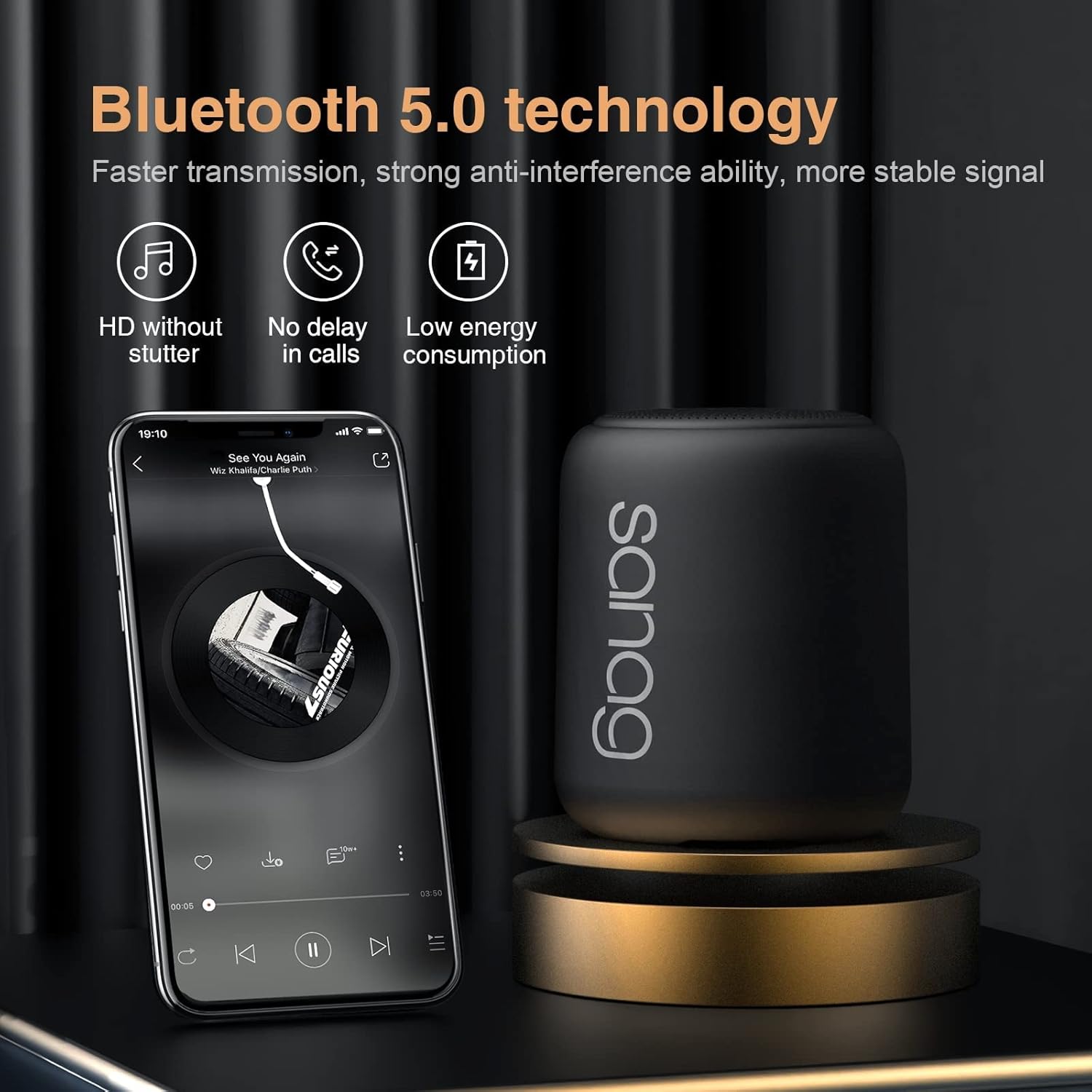 Sanag Bluetooth Speaker, Wireless Speaker with Stereo Sound and Rich Bass, Portable Speaker with IPX5 Waterproof, Outdoor Speaker Support TF Card and FM Radio, Built-in-Mic, for Android iOS (Black)