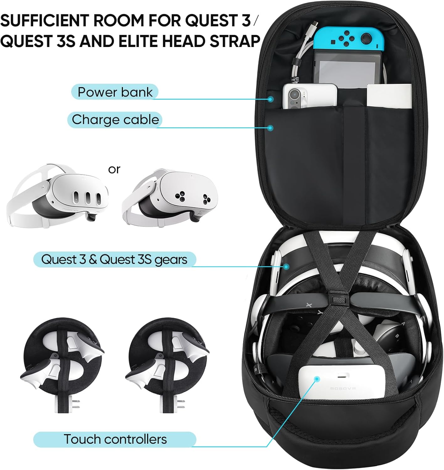 ✔ FIT ALL REPLACEABLE HEAD STRAP-The case compatible with BOBOVR S3 Pro/M3 Pro, KIWI Design, Elite battery headstrap and all. Solves the concern of not being able to carry a third party elite strap.