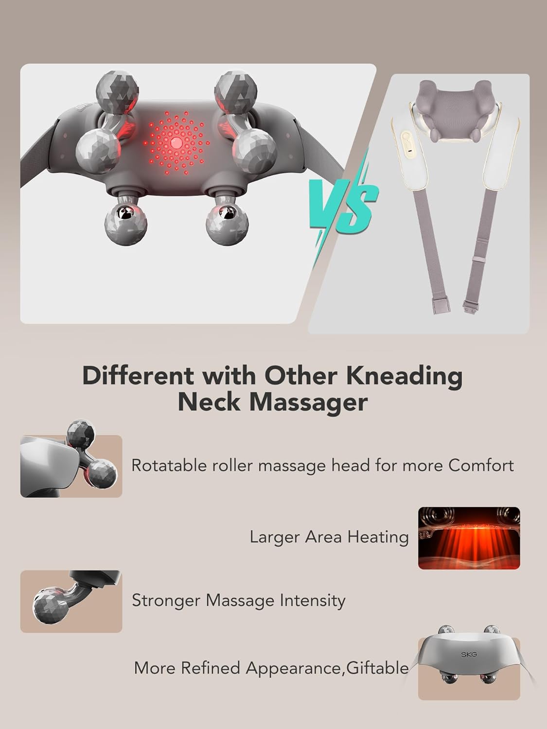 Hand-Free Design&Ideal Gifts – SKG H7 Ultra neck massager for pain relief deep tissue with heat employs a unique backpack design, freeing up your hands. Equipped with a built-in 2000mAh battery, it provides approximately 90 minutes of massage on a single charge.This make H7 ultra an excellent gift choice for birthdays, valentine’s Day, Mother’s Day, Father’s Day, anniversaries, or holidays
