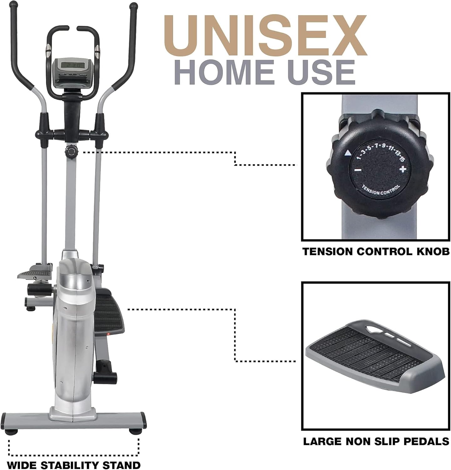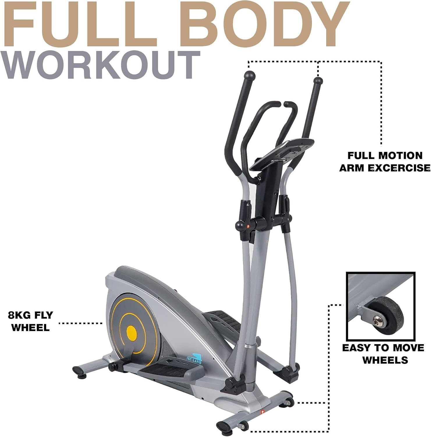 SKY LAND Elliptical Exercise Machine, Cross Trainer Fitness Equipment with Hyper-Quiet Magnetic Driving System, 15 Resistance Level, 250 lbs Weight Limit-Em-1541 – Silver