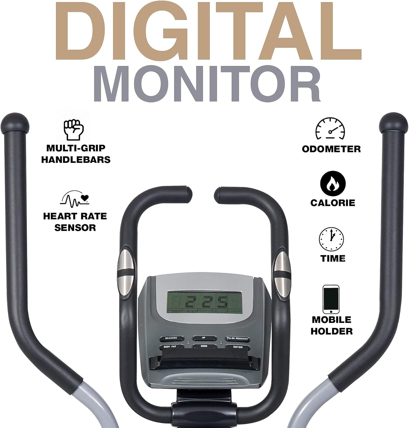 ✅ DIGITAL MONITOR: Keeping track of your fitness results is essential for any exercise routine. The standalone digital monitor displays: Calories, Distance, Odometer, Pulse, Speed, Time, Scan.