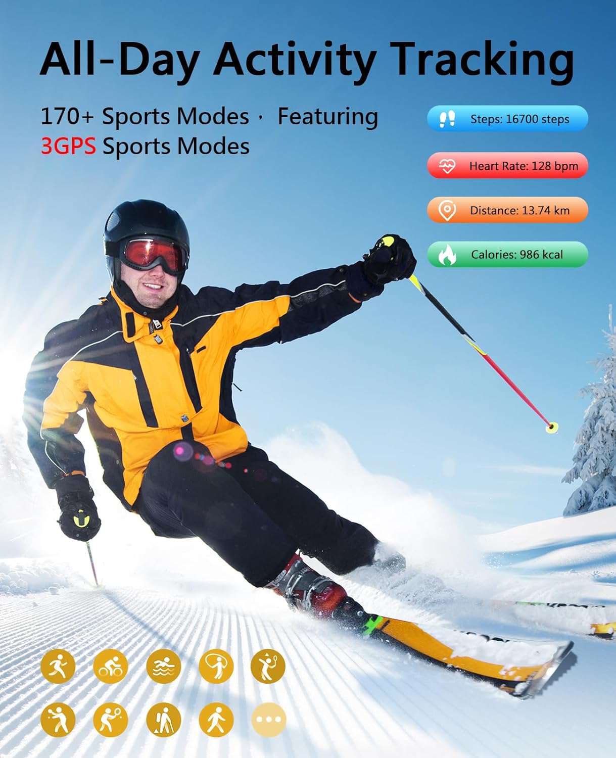 【All-Day Activity Tracking & 170+ Sports Modes】Maximize every workout with 170+ sports modes and 24/7 activity tracking. SOUYIE fitness tracker accurately monitors steps, distance, and calories burned all day to accelerate your goal achievement. Train smarter in 170+ activities including running, yoga, basketball, and skipping—plus 3 dedicated GPS modes (walking/running/cycling) for real-time route mapping. View real-time workout tracks on the app to analyze performance and optimize progress.