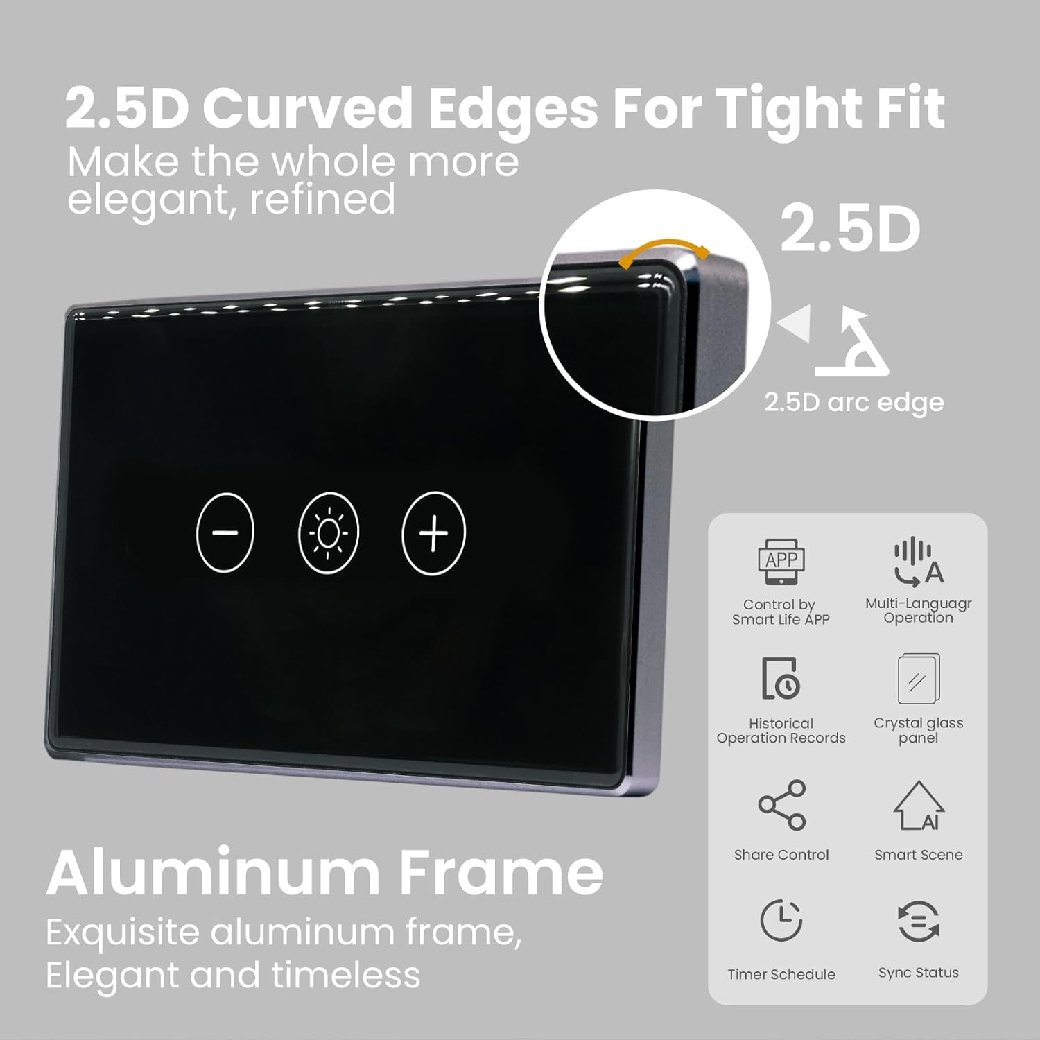 8 reviews for Smart Dimmer Switch 118X72X33MM Need Neutral Wire,Aluminum Frame 2.5D Glass Panel,2.4GHz Wi-Fi,Work with Tuya and Smart Life,Black Dimmer