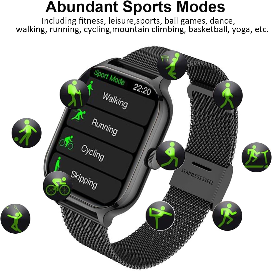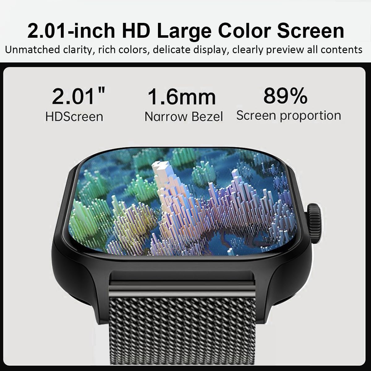 🌟 – 【Immersive Display & Versatile Health Monitoring】The smartwatch features a 2.01-inch high-definition touchscreen that delivers vibrant and sharp visuals. With built-in health monitoring capabilities, including heart rate tracking, blood oxygen saturation, sleep analysis, and support for over 60 sports modes, it offers comprehensive insights into your health and fitness.