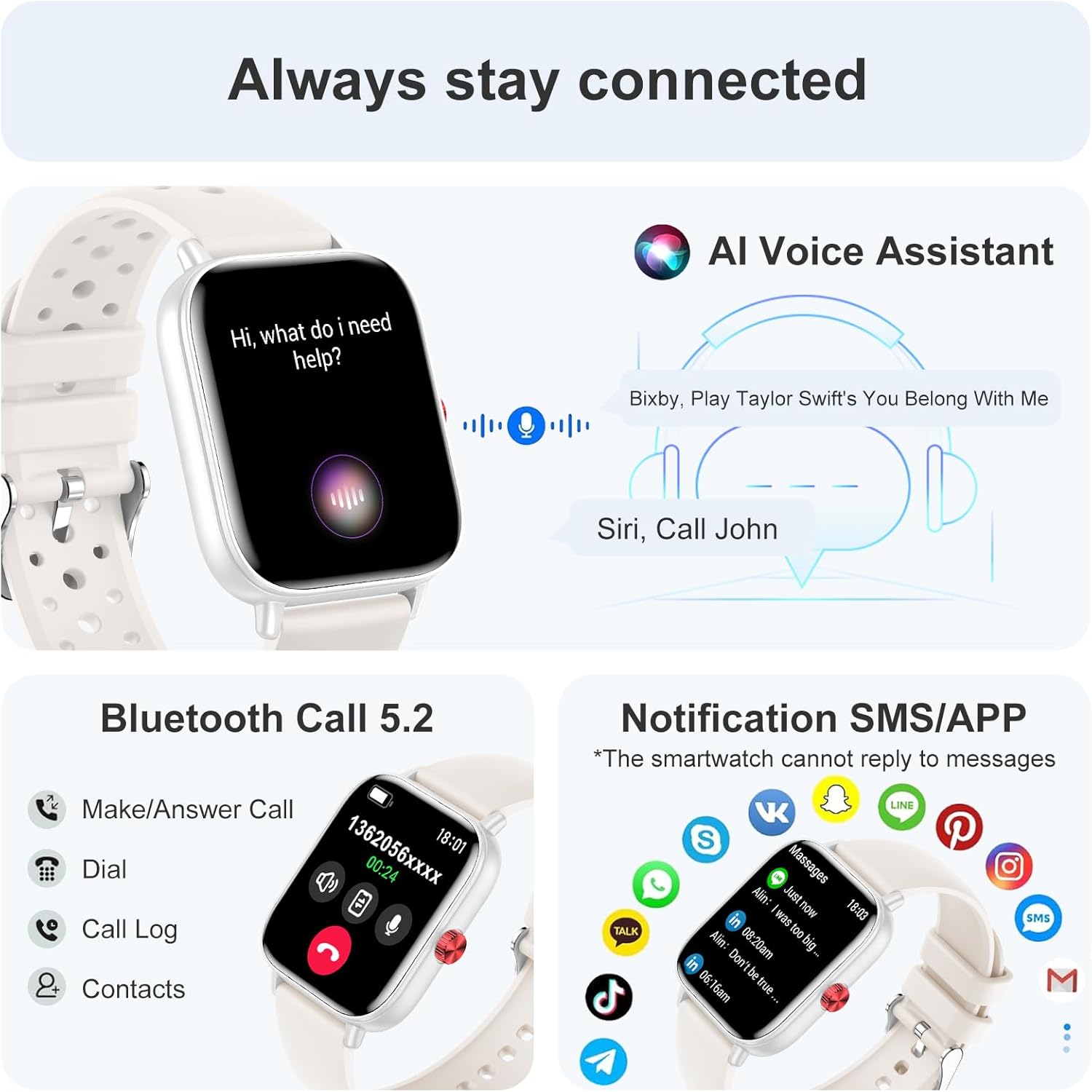 【Voice and Life Assistant】Enjoy the convenience of the voice assistant, your virtual assistant right on your wrist. Ask questions, set reminders, control smart devices and much more, all with your fitness tracker. There are also some life functions such as: Flashlight, alarm clock, stopwatch, camera and music control, breathing training, phone search, mini games and much more. If you have any problems, please contact us via Amazon, professional customer service will help you solve it Within 24 hours