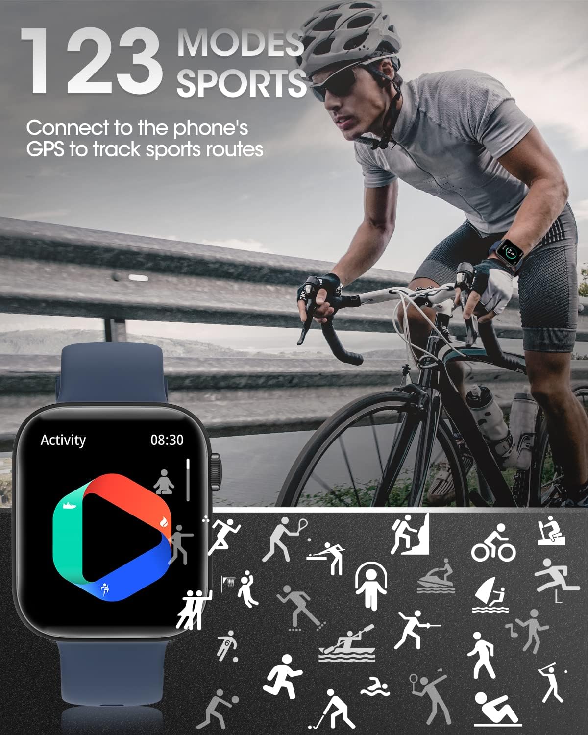 123 sports modes available according to the goals you need, choose from a huge selection of over 120 sports modes, including walking, running, cycling, yoga, and a lot more. Fitness smart tracker supports records your heart rate, distance, steps and calories during exercise. Besides, ip68 waterproof endures the equivalent of up to 20 meters of water pressure.