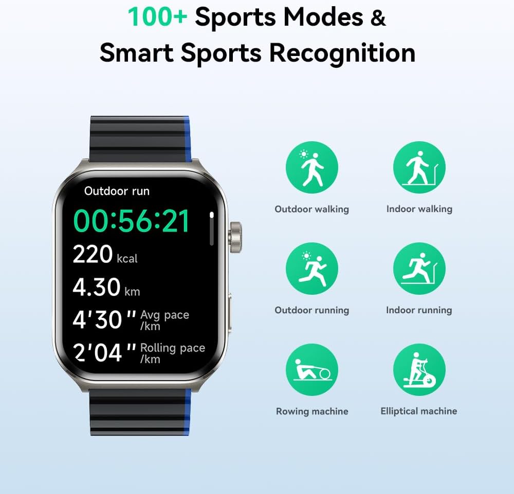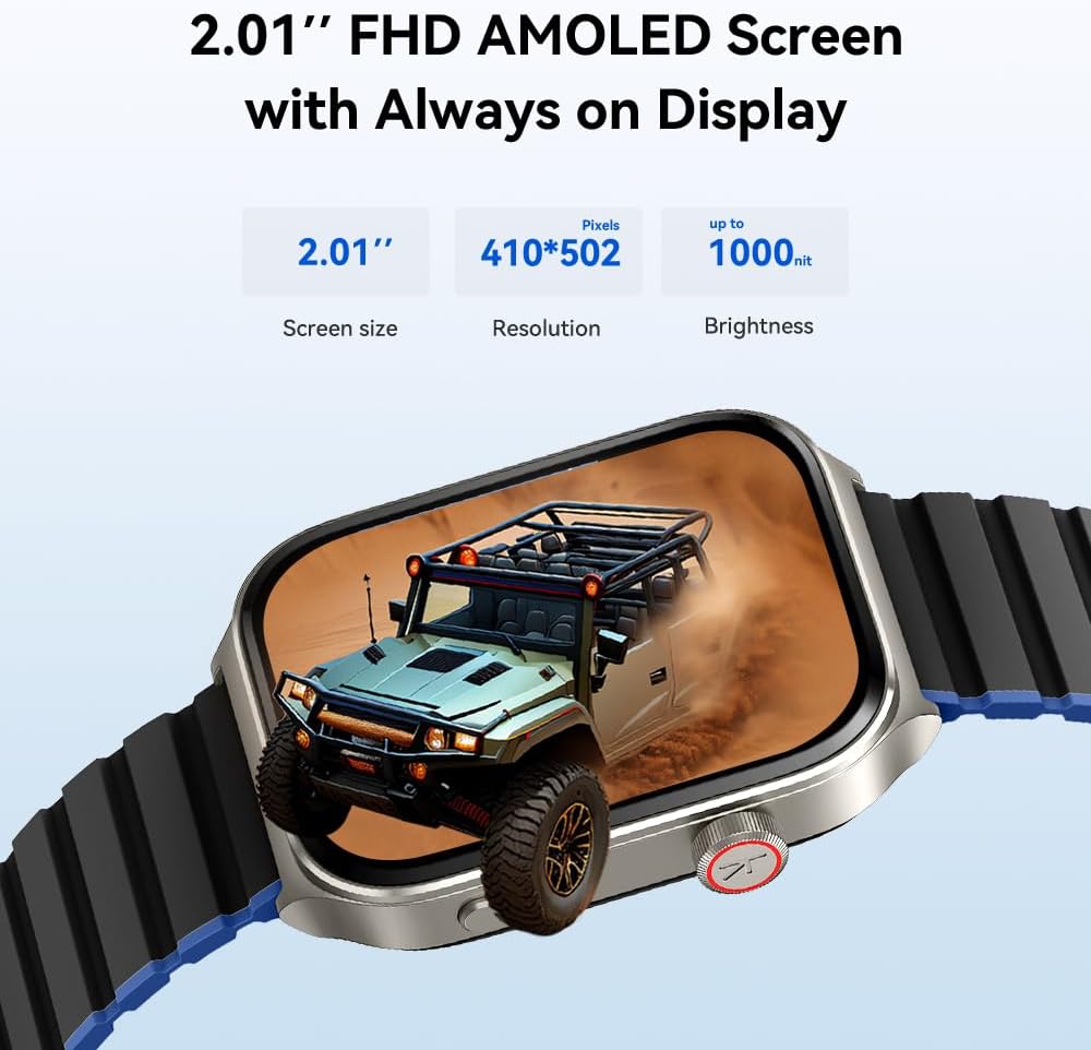 2.01″ FHD AMOLED Screen: Enjoy a superior viewing experience with the 2.01″ AMOLED screen on our smart watches for men. The high-resolution display delivers sharp, vibrant visuals, making it easy to read notifications, track fitness metrics, or navigate in any lighting condition.
