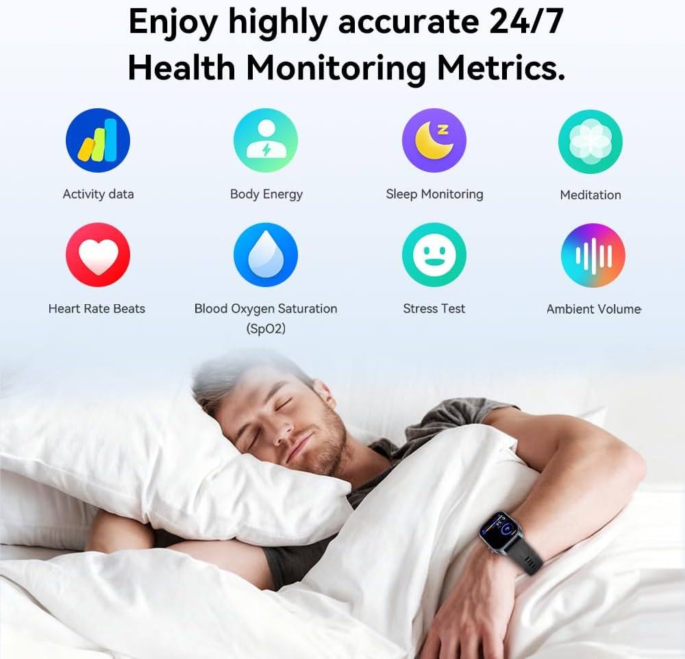 24/7 Health Tracking: Android smart watch has a built-in optical sensor that continuously monitors your stress, heart rate, and sleep quality. The sleep tracker provides a comprehensive quality analysis of your sleep to help you make informed decisions