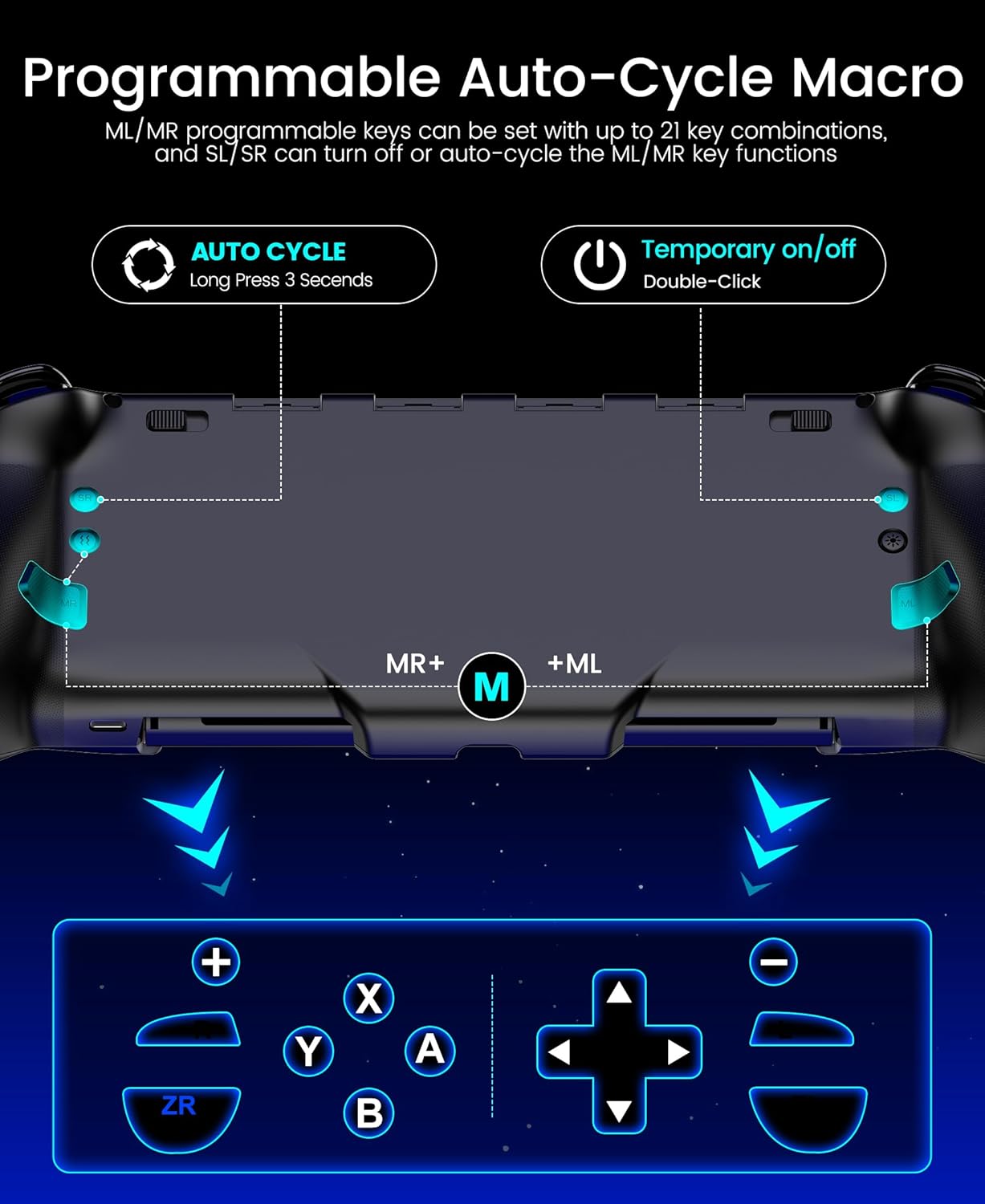 Programmable Pro Controller Switch: Customize your controls with single or multiple mappings, including A+B+Y+L+ZL+R+ZR+D-pad. The loop programming buttons enable endless cycling of your personalized combination skills. This innovative handheld controller enables you to effortlessly execute efficient combos, to achieve an unparalleled gaming experience, also minimizes button abuse and clicks, extending the lifespan of the controller