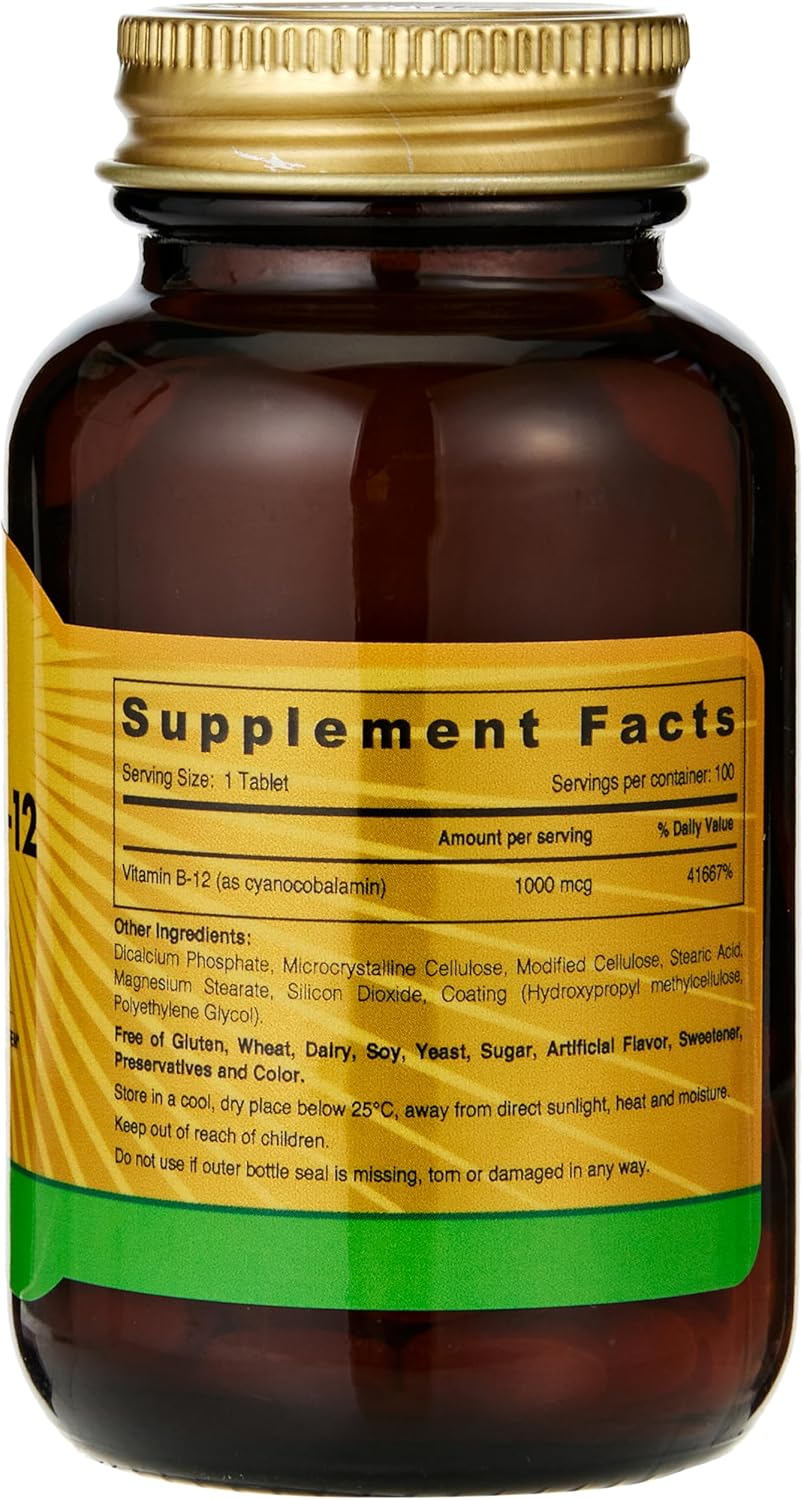 Sunshine Vitamin B12 Vitamin B12 is a water-soluble vitamin, and it has many health benefits. You can boost your health with sunshine nutrition vitamin B12 tablets. Vitamin B12 for energy Vitamin B12 is in the B-Complex category of essential nutrients and promotes energy metabolism and healthy nervous systems. Vitamin B12 tablets for heart health It also promotes the regeneration of red blood cell, that help to deliver oxygen all over the body. B12 helps to maintain healthy levels of homocysteine already in a normal range which is effective for a healthy heart. Brain and nervous system functioning It promotes energy production, turning food into fuel and supports the normal function and cognition of the brain, which is important for the formation of a red blood cell. It supports the good role of immune systems and enhances the metabolism of energy. Supports energy metabolism Vitamin B12 is involved in many metabolism reactions. It is also essential for the renewal and synthesis of DNA. Vitamin B12 for the immune system It also strengthens the immune system and prevents you from different diseases and foreign invaders to attack the body. Natural ingredients It is made with organic and natural ingredients. It is non-GMO. It is free from gluten, gelatin, soy, parabens, wheat, yeast, and sulphates. It is free from artificial flavors, colors, and additives.