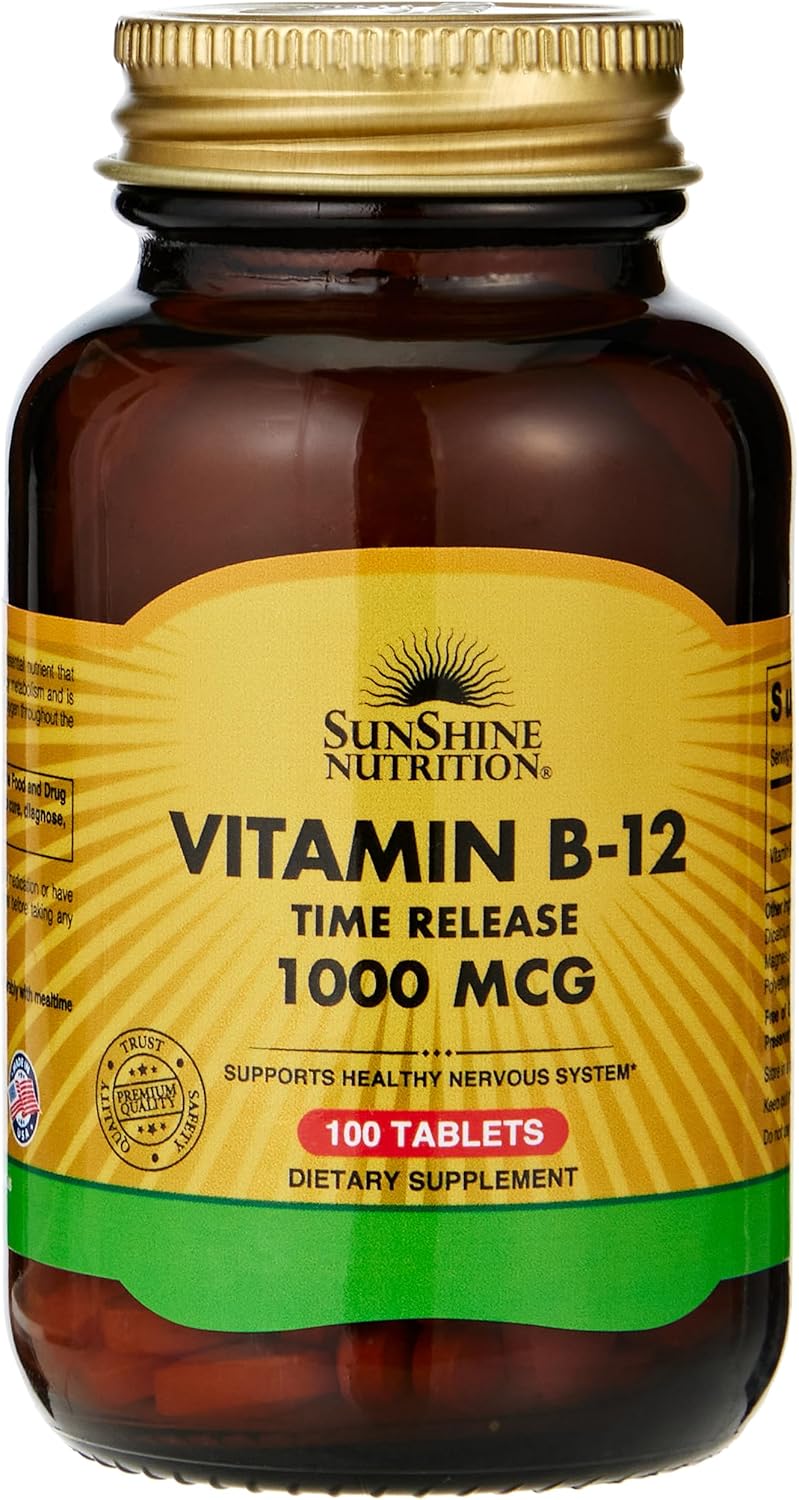 Sunshine Nutrition Vitamin B-12 Time Release 1000Mcg | To Supports Healthy Nervous System | Superior Source Of Energy | 100 Capsules