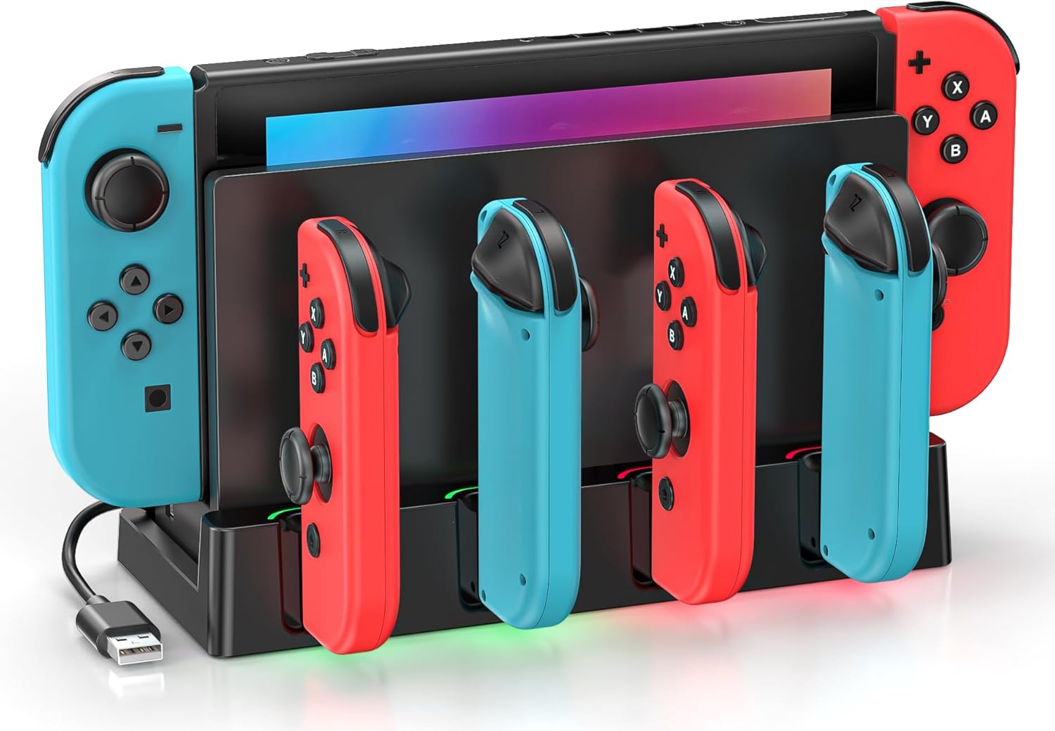 The Tokluck Switch Controller Charging Dock Station is a fantastic value for the price, charges Joy-Cons quickly and keeps everything neatly organised. It’s sturdy, easy to use, and works perfectly with the Switch OLED. My only gripe is the very bright indicator lights, which can be distracting in a dark room. Still, an excellent accessory for any Nintendo Switch gamer.