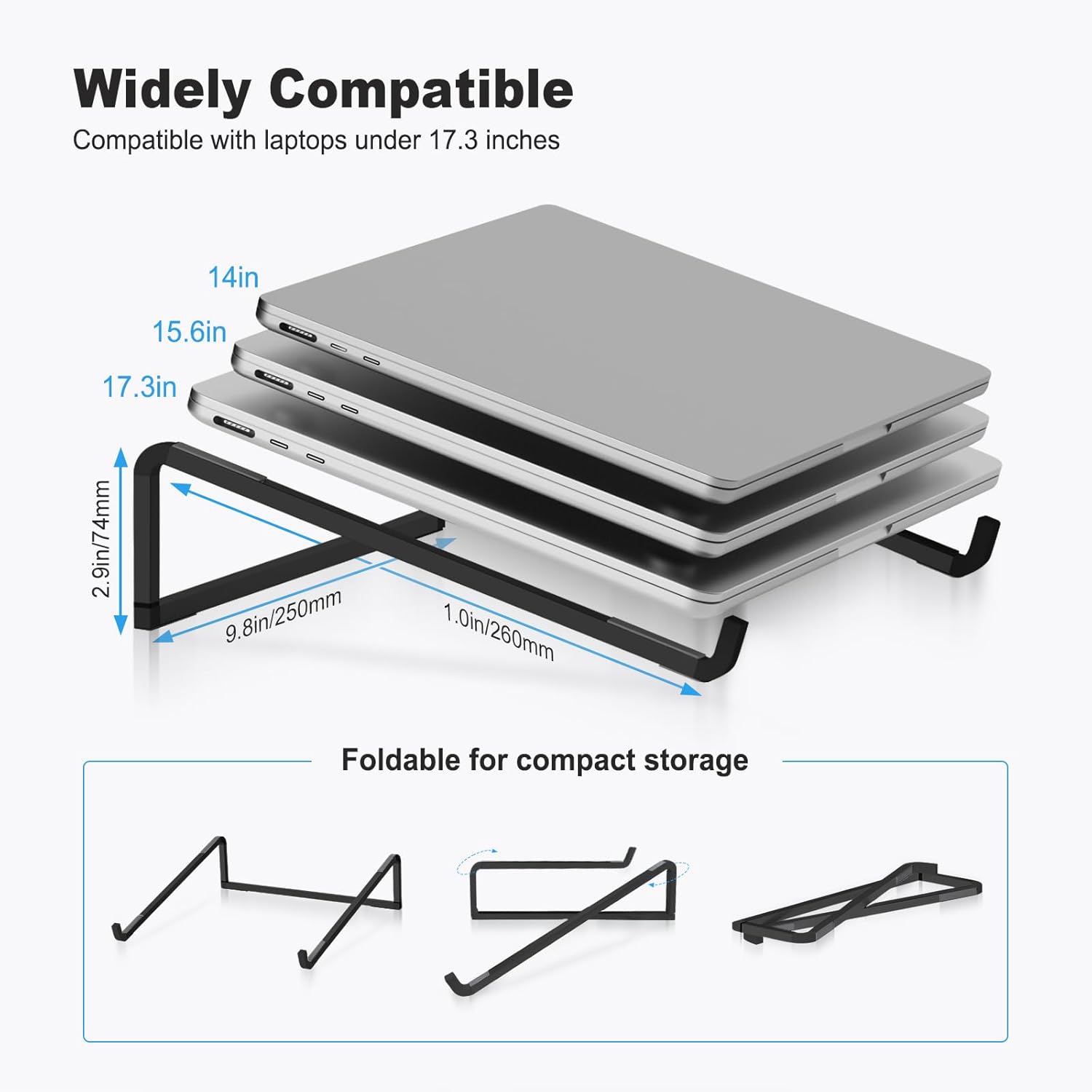 TENOC Foldable Laptop Stand for Desk, Universal Laptop Riser Ventilated Holder Mount Compatible with MacBook, Notebook, ASUS, Acer and More, Black