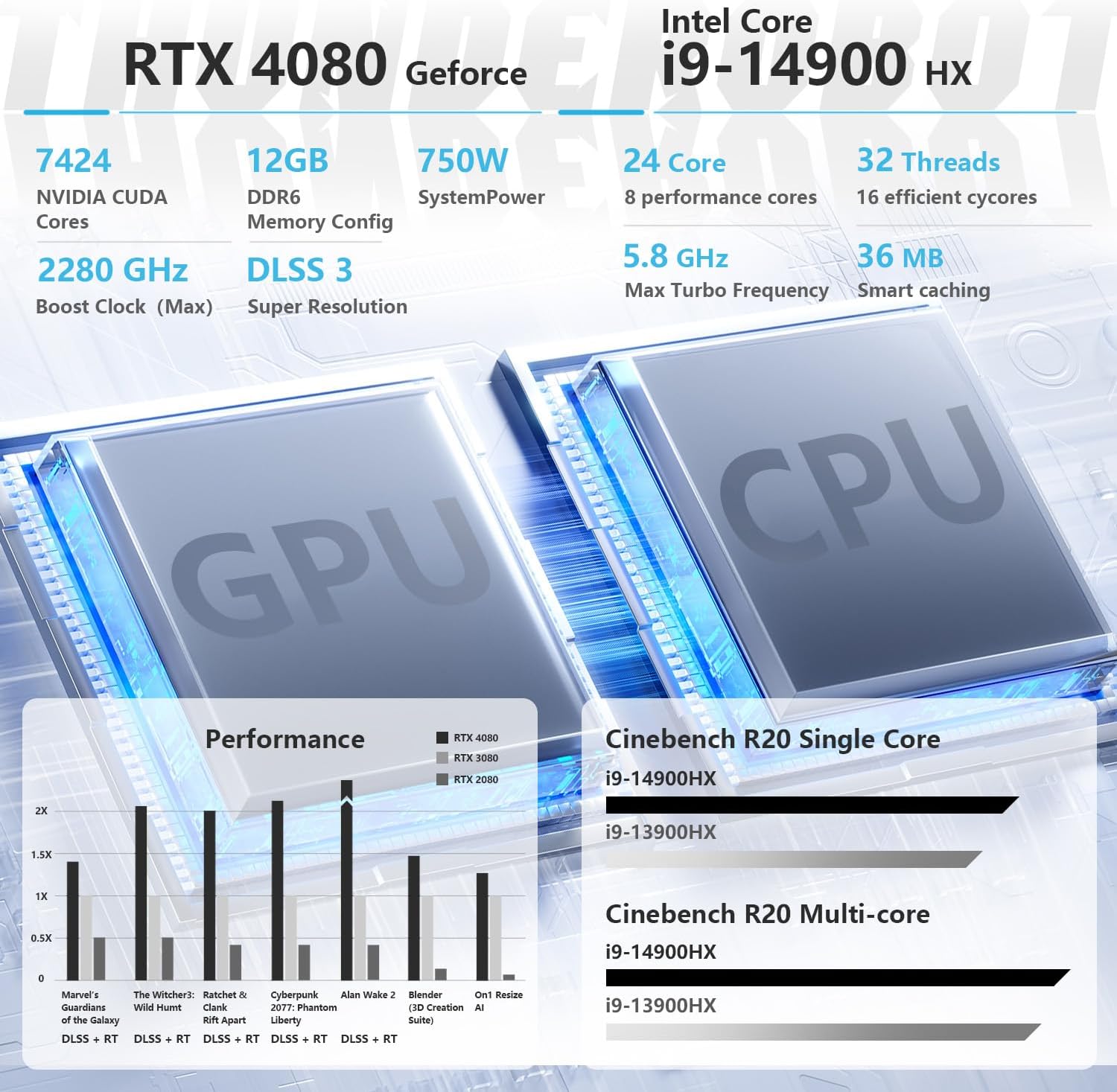 [AI-Driven Power: Ultimate Performance & Graphics] Intel Core i9-14900HX Processor (24 Cores, 32 Threads, 36MB Intel Smart Cache, Base at 1.6 GHz, Up to 5.8 GHz Max Turbo Frequency), with NVIDIA GeForce RTX 4080(12 GB GDDR6)