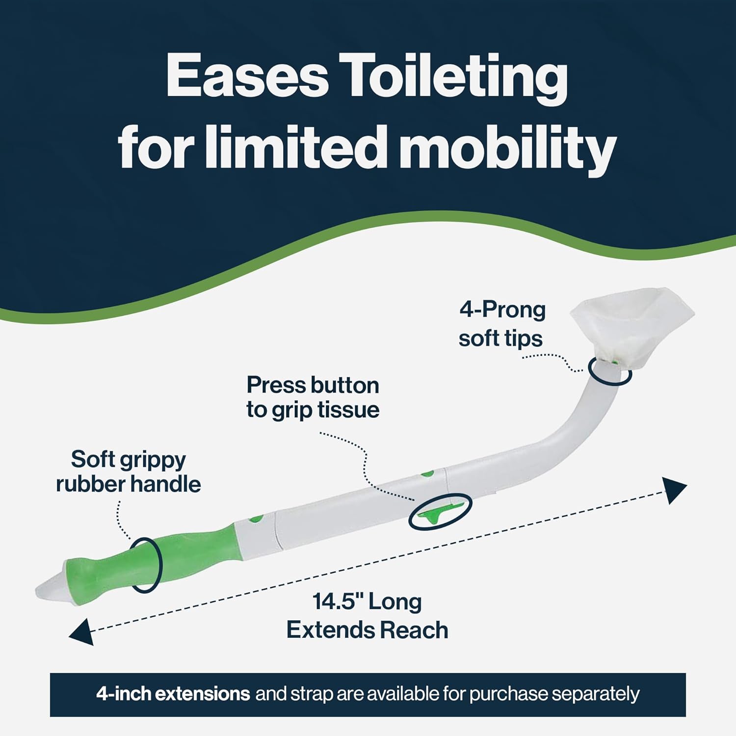 MULTIPURPOSE TOILET AIDS FOR WIPING – Holds tissue, wet wipes, loofah, razors, and other personal care products with the right size handle so you can do activities in the bathroom independently. The perfect grooming tool for people with a limited range of motion.