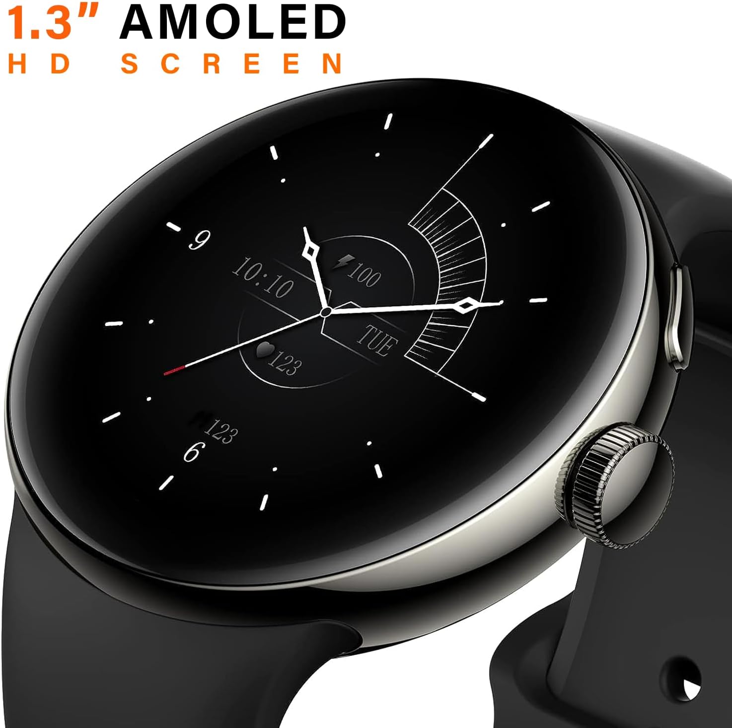 🌈 Always-on AMOLED Display: 360×360 HD Resolution 1.3″ Screen Enjoy vibrant, detailed colors and an always-on display, even in bright sunlight, for a superior viewing experience.