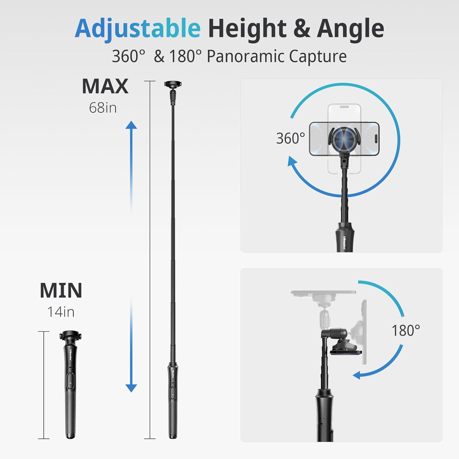 【180° & 360° Rotation】A Flexible Combination of 180°Neck Rotation and 360°Head Rotation Allows You to Capture Stunning Photos and Images from Broader Angles and Higher Positions. Whether it’s Travel Adventures, Gatherings, Weddings, or Beautiful Outdoor Landscapes, You Can Easily Achieve it.