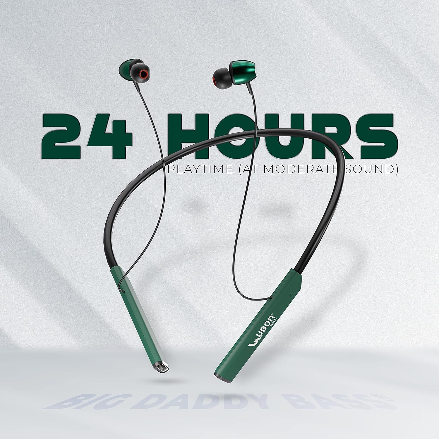 UBON Bluetooth Earphone CL-380 Classo Series, Wireless Neckband with Up to 24 Hours Playtime, 10mm Dynamic Driver, Magnetic Earbuds, v5.0 Bluetooth Headset (Green)