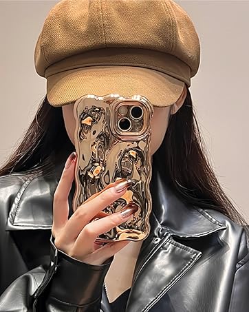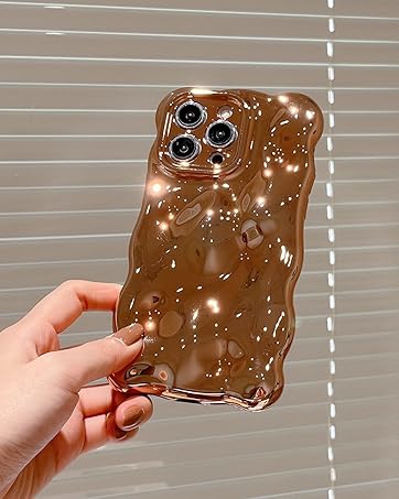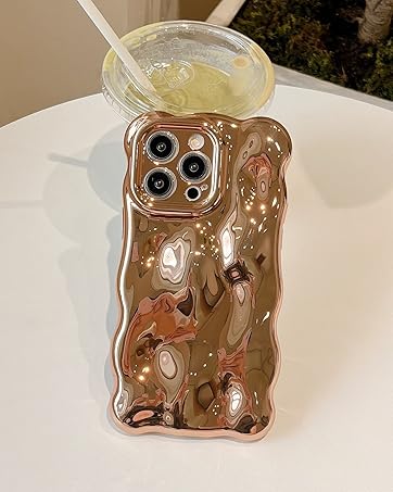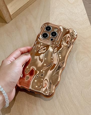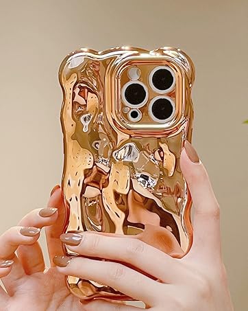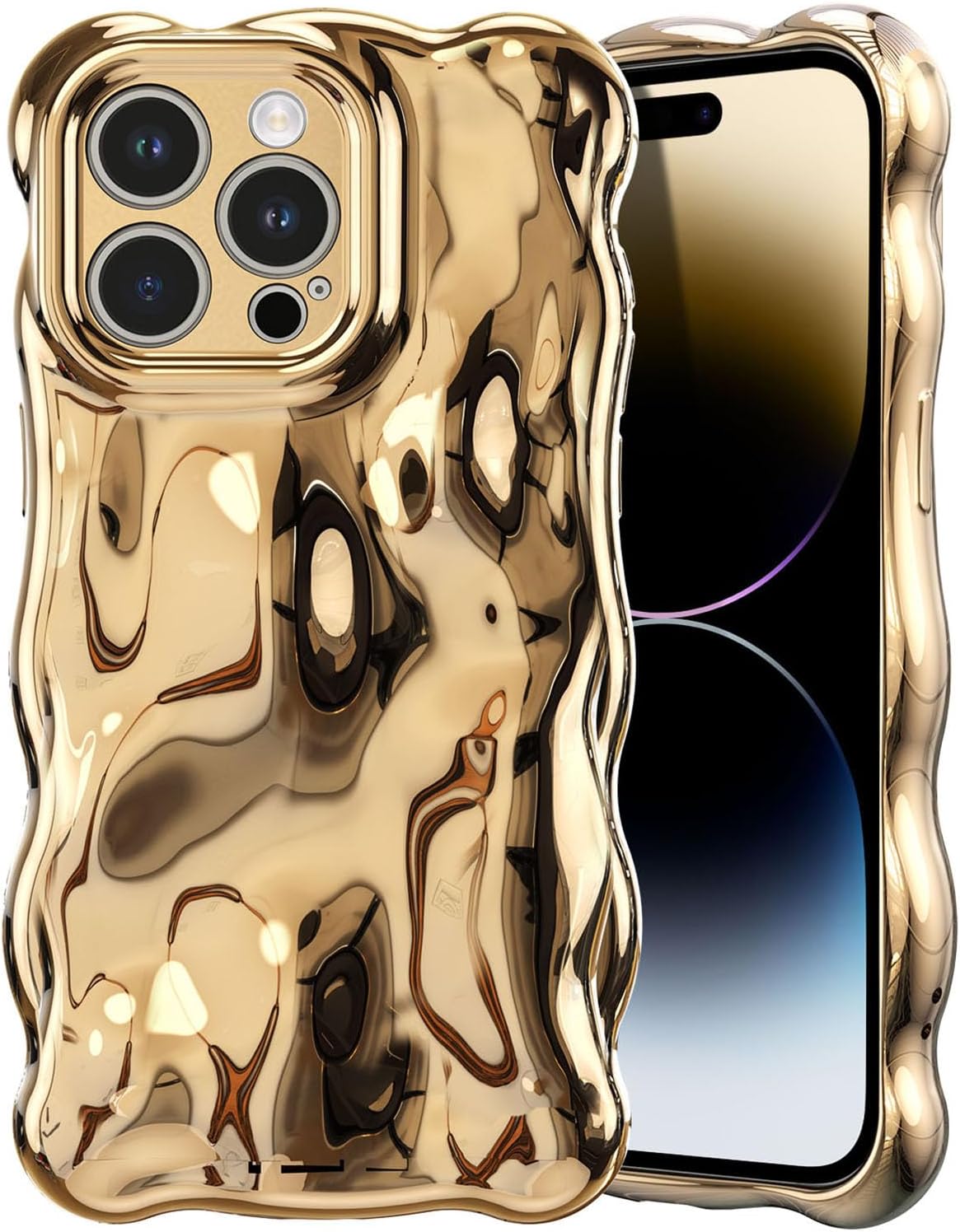13 reviews for UEEBAI Ripple Case for iPhone 16 Pro Max, Cute Silver Cover Wave Shape for iPhone Case Pretty Aesthetic 3D Phone Cover, Water Ripple Shell 3D Chrome Design for Women and Girl, Gold