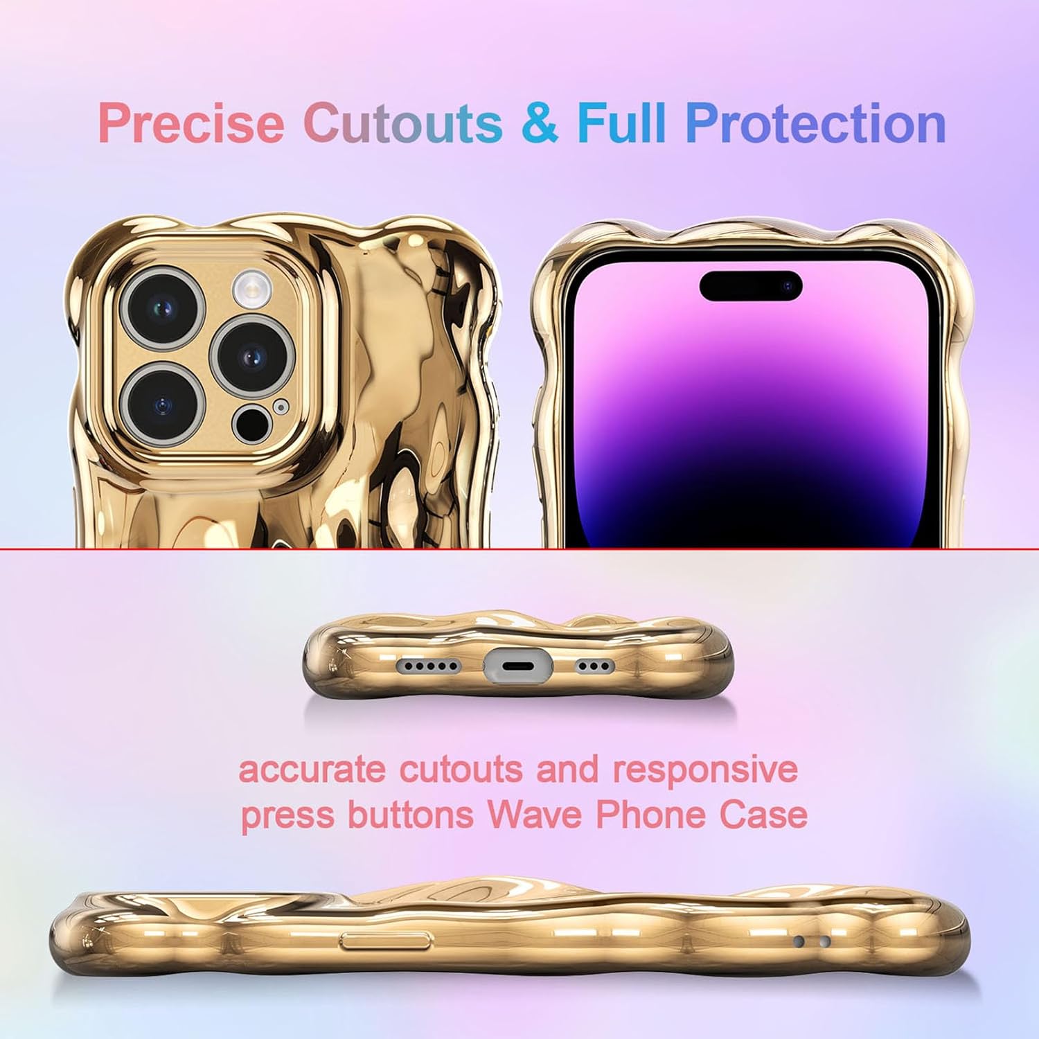 13 reviews for UEEBAI Ripple Case for iPhone 16 Pro Max, Cute Silver Cover Wave Shape for iPhone Case Pretty Aesthetic 3D Phone Cover, Water Ripple Shell 3D Chrome Design for Women and Girl, Gold