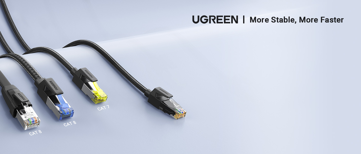【Robust & Durable Ethernet Cable】UGREEN Cat 8 Ethernet Network Cable is wrapped with double layers of high quality cotton braided wire, making the LAN cable stronger and more durable. Network cables are made from double-braided internet cables that have survived over 10,000 bend tests for longer life, flexible enough to run around corners or door frames and durable.