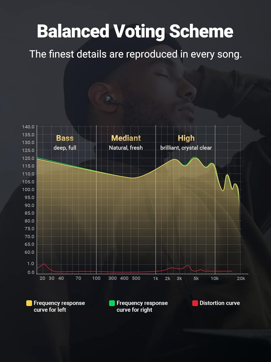 UGREEN 3.5mm earphones are ergonomically shaped, with a 45° inclined design inserted into the ears, which fit the ears and are comfortable to wear.In addition, S/M/L earplugs are also included, so you can choose the right size to get the best wearing experience.