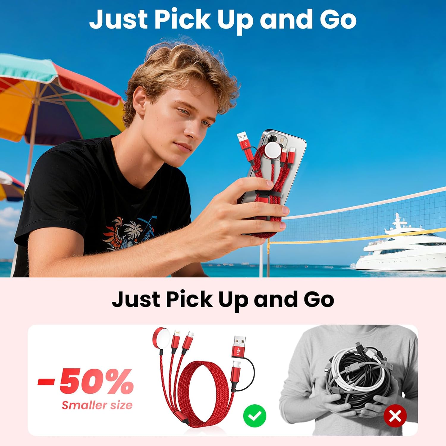 [Extreme Durability and Safety] Our multi cord charger cable is built to survive daily abuse: ◾Over-current, over-voltage and over-temperature protection with Smart chip. ◾20,000+ bend-proof nylon braided sheath. ◾6-core tinned copper for stable charging. ◾Sturdy Aluminum alloy connectors tested for 25,000+ plug/unplug cycles. The charging cables for multiple devices are perfect for rough use—whether you’re traveling, hiking, camping, commuting, or just tired of replacing other unreliable cables!