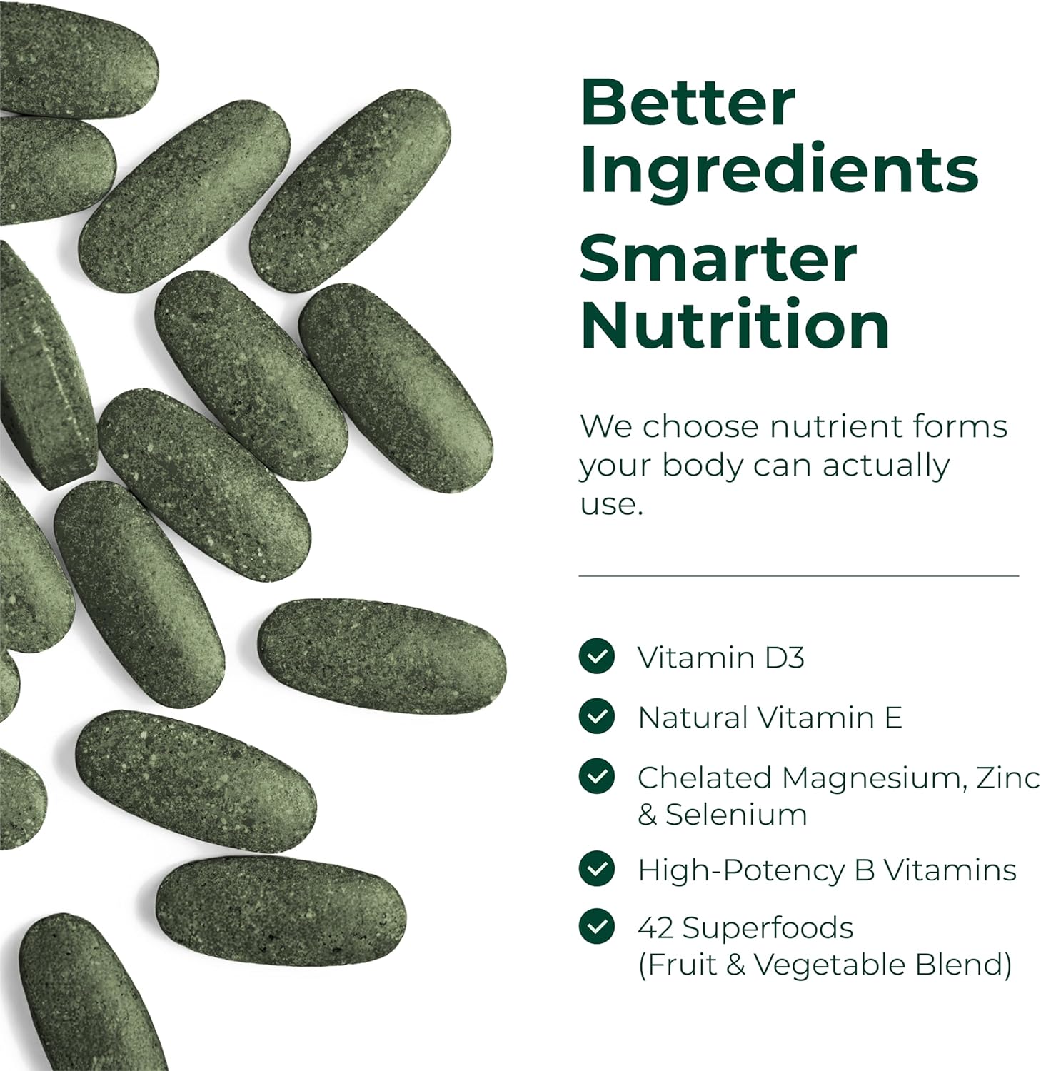 IMMUNE & ANTIOXIDANT SUPPORT – Powerful blend of Vitamin C (556% DV), Vitamin D3, Zinc, Selenium, Garlic plus superfoods like Spirulina, Echinacea, and Green Tea Extract to help support a healthy immune system and oxidative stress protection. With forms your body can absorb and use.*