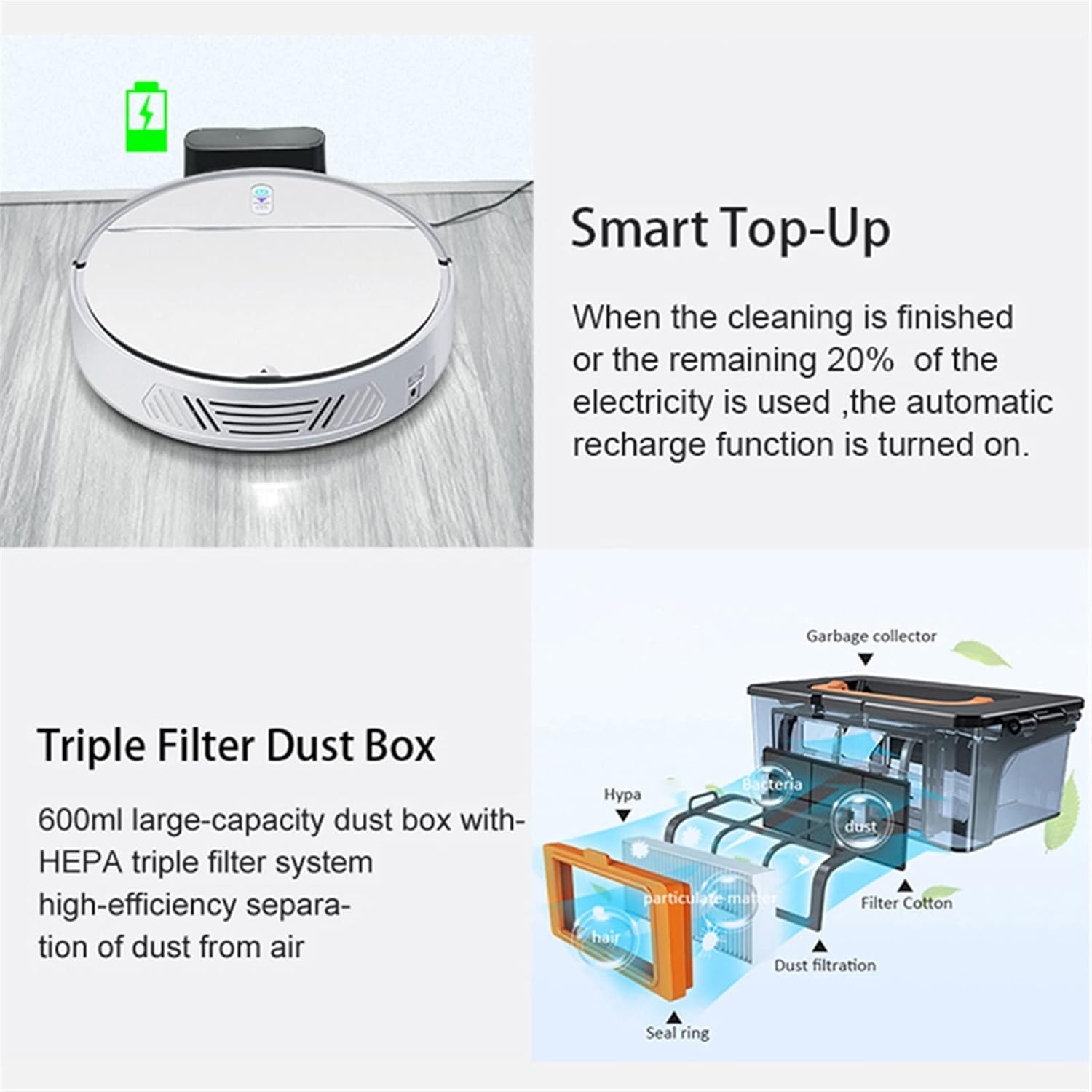 ❤【2-in-1 Mopping Robot Vacuum】Vacuum and mop simultaneously with a 400ml dustbin and a 300ml water tank, removing fine dirt that vacuuming alone may miss; robot vacuum is ideal for hardwood, tile, and stone floors.