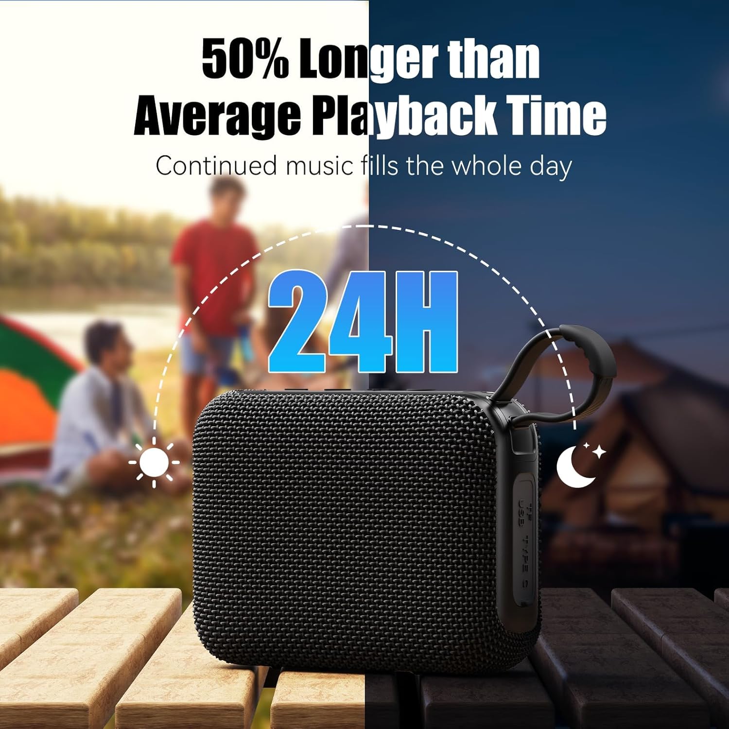 【All-Day 12-Hour Playback】 High-capacity battery provides 12 hours continuous play. Energy-saving tech maintains consistent sound quality, perfect for beach days, camping, or all-night gatherings.