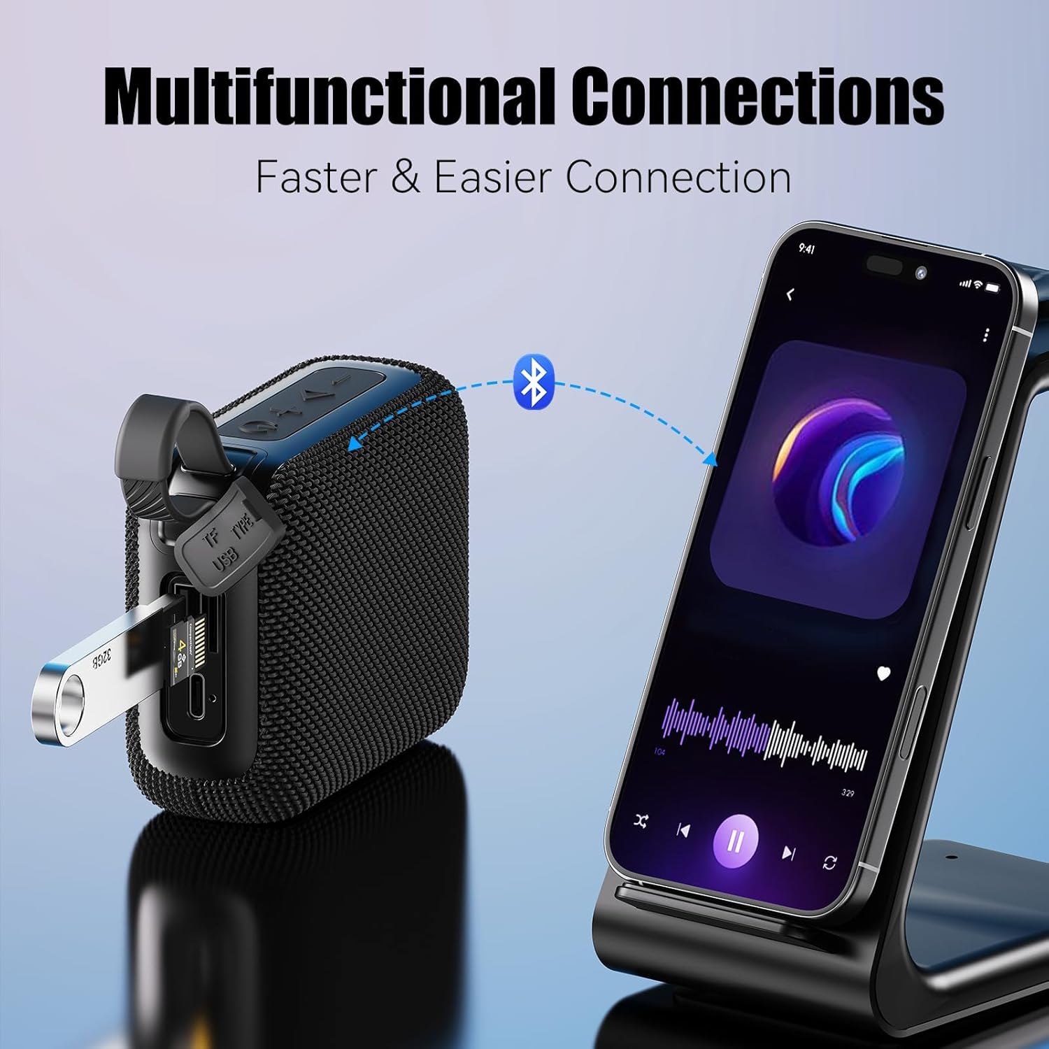 【Bluetooth 5.3 & Multi-Device Support】 Latest Bluetooth 5.3 ensures stable, low-latency connections up to 20m. Supports TF cards, USB drives, AUX input, and TWS pairing for double the sound.