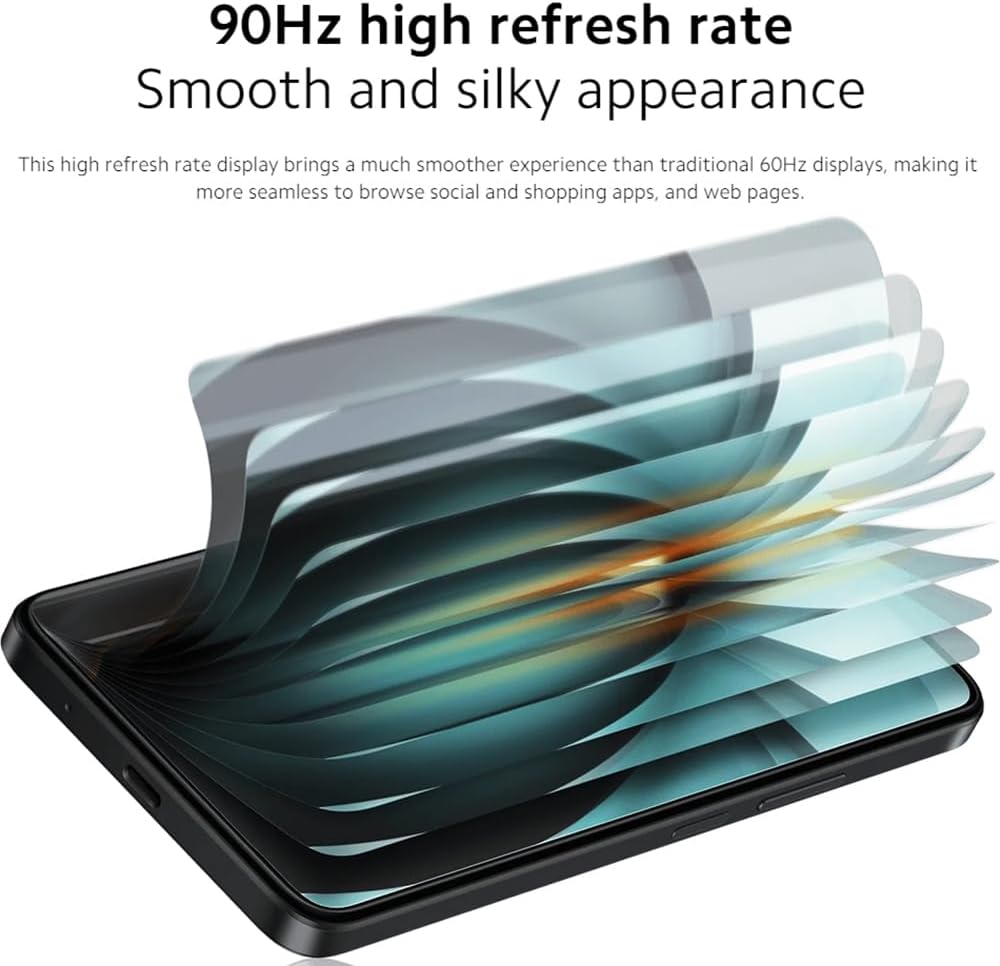 6.71″ Dot Drop display1650x720, 268 ppiContrast ratio: 1500:1Color depth: 8-bitBrightness: 500 nitsRefresh rate: Up to 90Hz**Refresh rate can be adjusted to up to 90Hz for supported apps.DC dimmingScreen-to-body ratio: 90% (AA/CG)*Data obtained from Xiaomi Internal Labs. Actual results may vary.Supports Night Light