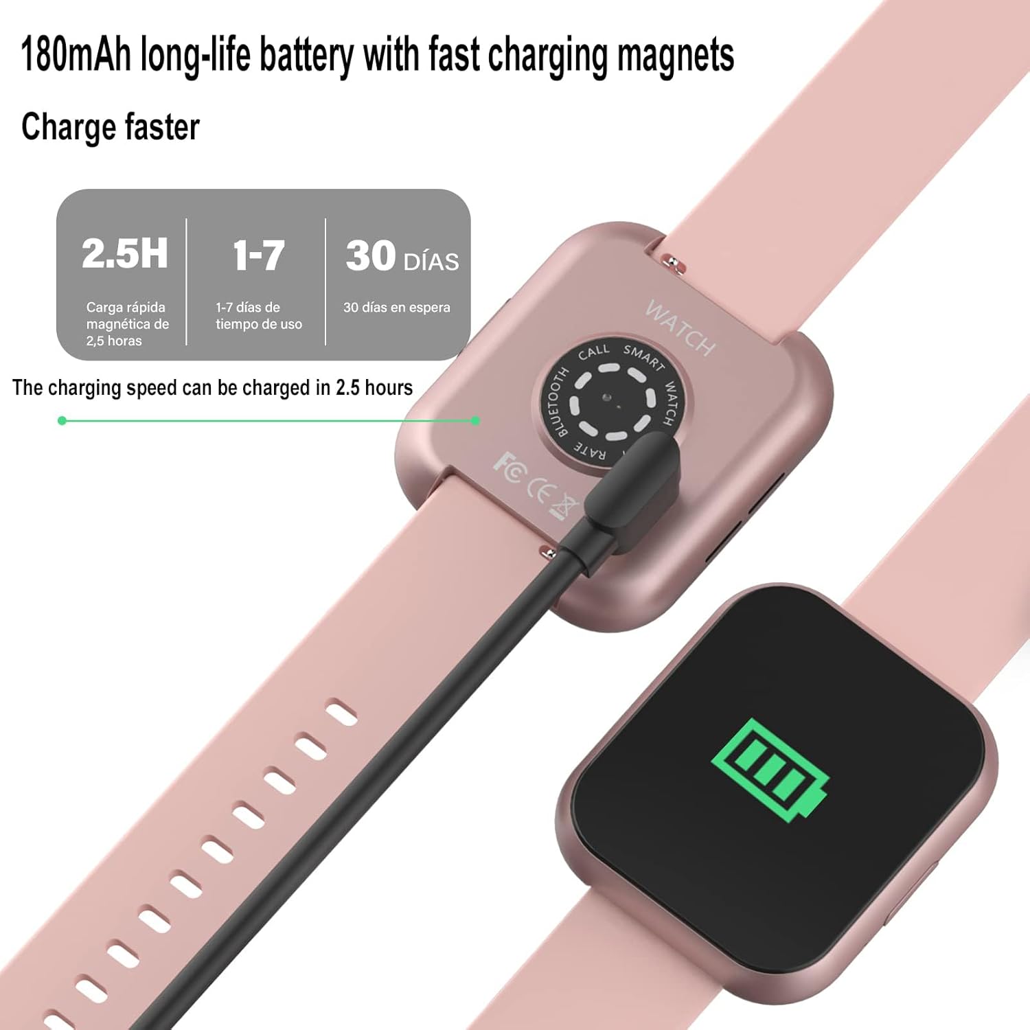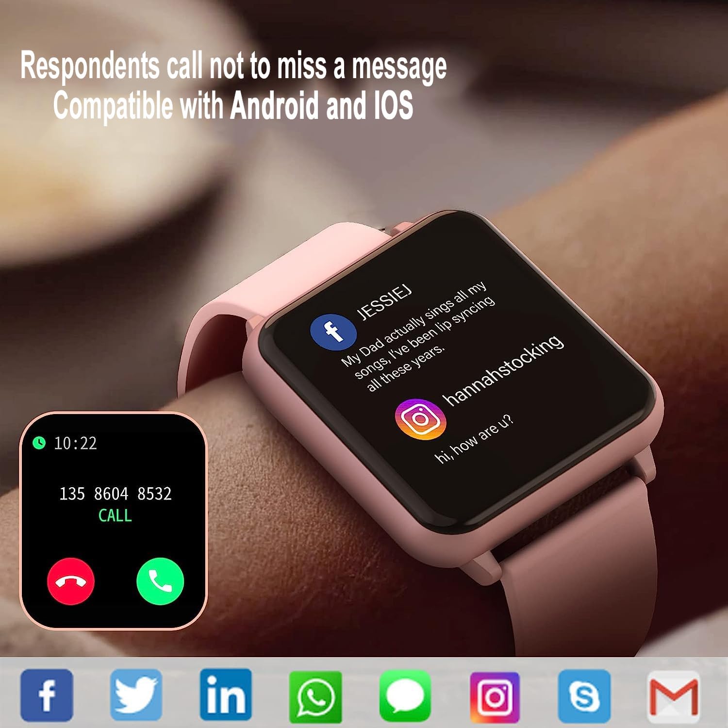 YOMYM Smartwatch, Sports Smartwatch, IP67 Waterproof Touchscreen Activity Monitor with Heart Rate Monitor and Blood Pressure, Phone Answering, Women’s Watch (Pink)